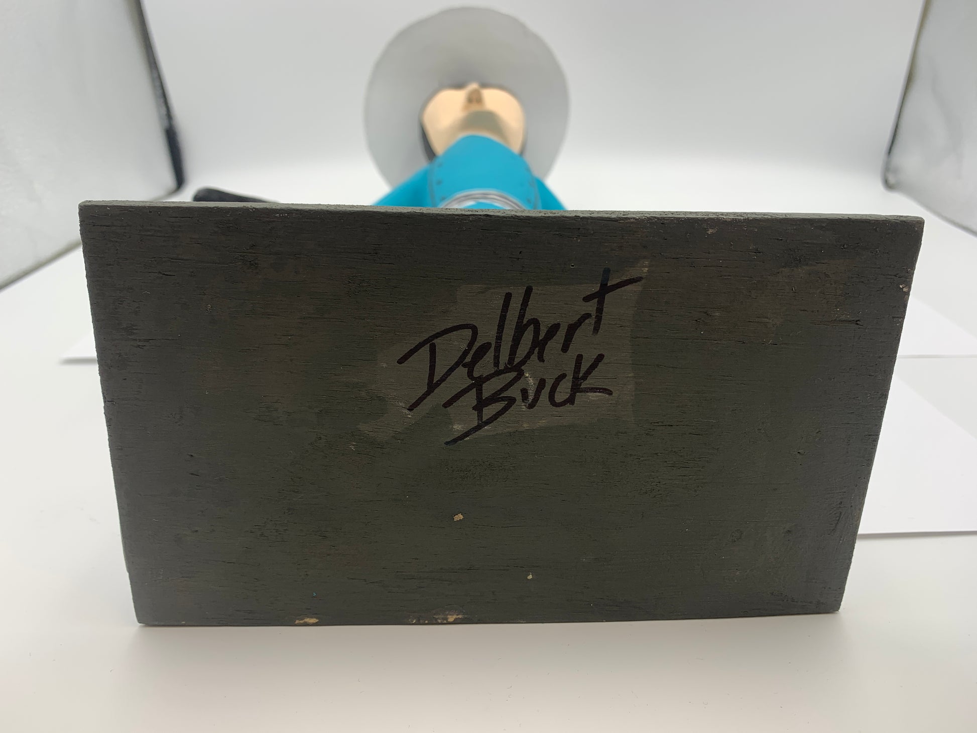According to Navajo Folk Art by Chuck and Jan Rosenak the Buck Family members are typical Navajo herders of sheep and goats. Delbert was born in 1976 and studied auto mechanics. Buck started making sculptures from found objects at age 12. Delbert Assembles constructions from found objects and combines then with crudely carved and painted figures. Humor and satire are central to his art.