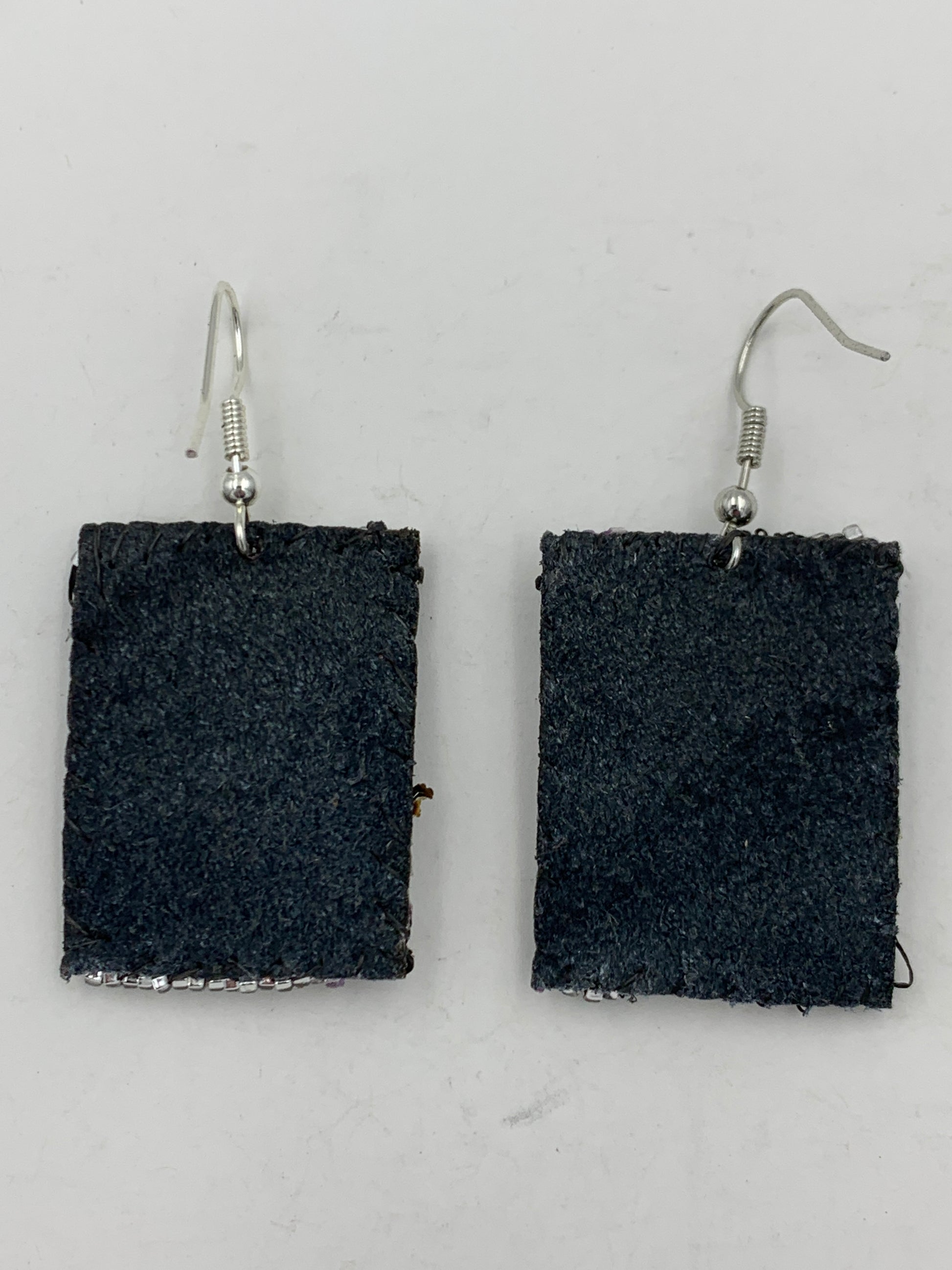 These Laser cut beaded leather earrings match size and design of some of our Apple Watch Bands for Apple Watch 42/44/45. The Bead work is done by Dwight Nathaniel of the Navajo Nation. The beads are made of glass and have a rug design that nicely matches the leather watch band. The bead work is hand sewn onto the leather. The earring loops are stainless steel.