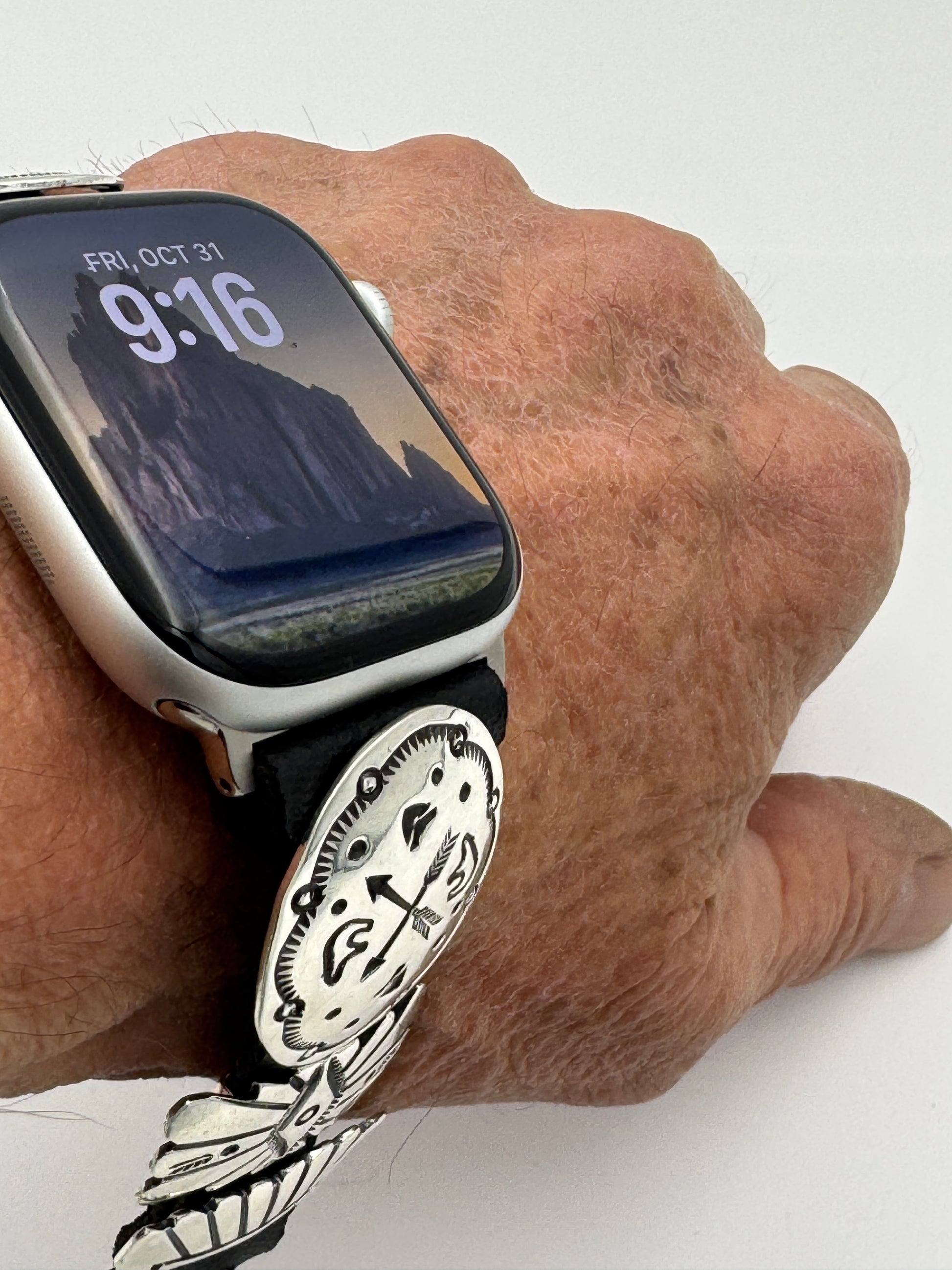 Jeanette Dale 42/44/45mm Sterling Silver Concho Apple Watch Band #51