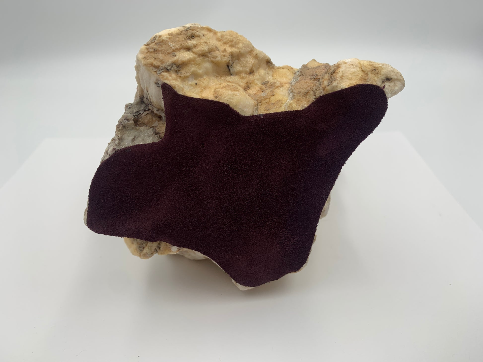 This Apple WATCH Charging Stone is handcrafted by Jordan Toledo of the Navajo Nation. The Stone is a one-piece carving made of alabaster and has a Charging Adapter hole. The carving pictures a cross and the Charging Adapter hole has a leather surrounding that will firmly hold an Apple Lighting Cable while your Apple WATCH safely charges. A maroon-colored suede base is attached along the bottom to prevent scratching surfaces. The charging Stone will work with most 38/40mm or 42/44mm Apple WATCH bands.