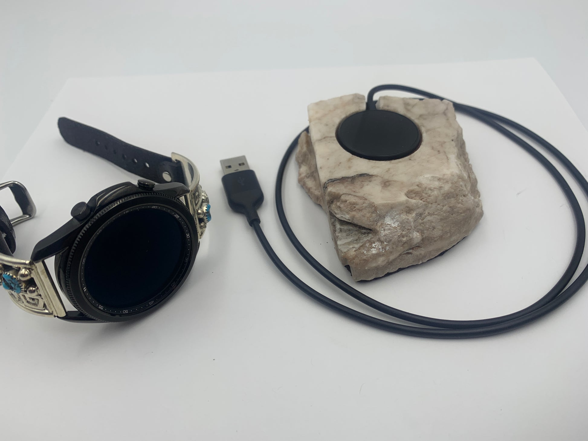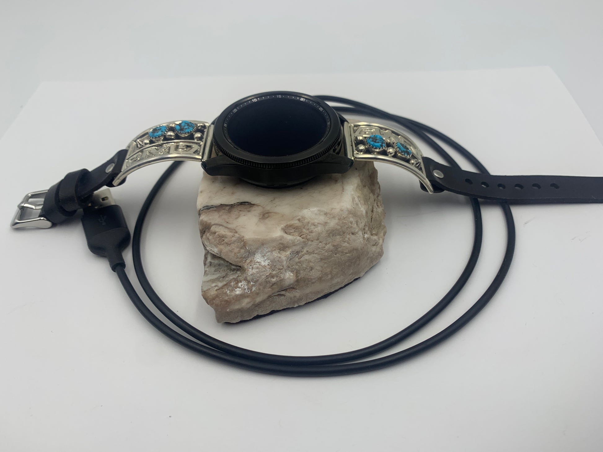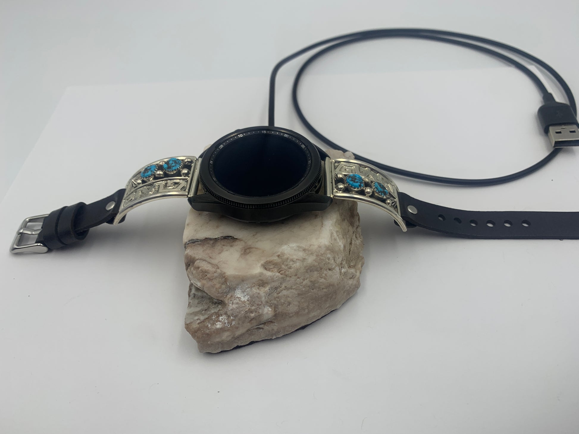 Samsung Galaxy Watch, Bilasáana Turquoise and Silver iBand and Samsung Watch Charging Cable are NOT included. Only the Charging Stone is included in this purchase.