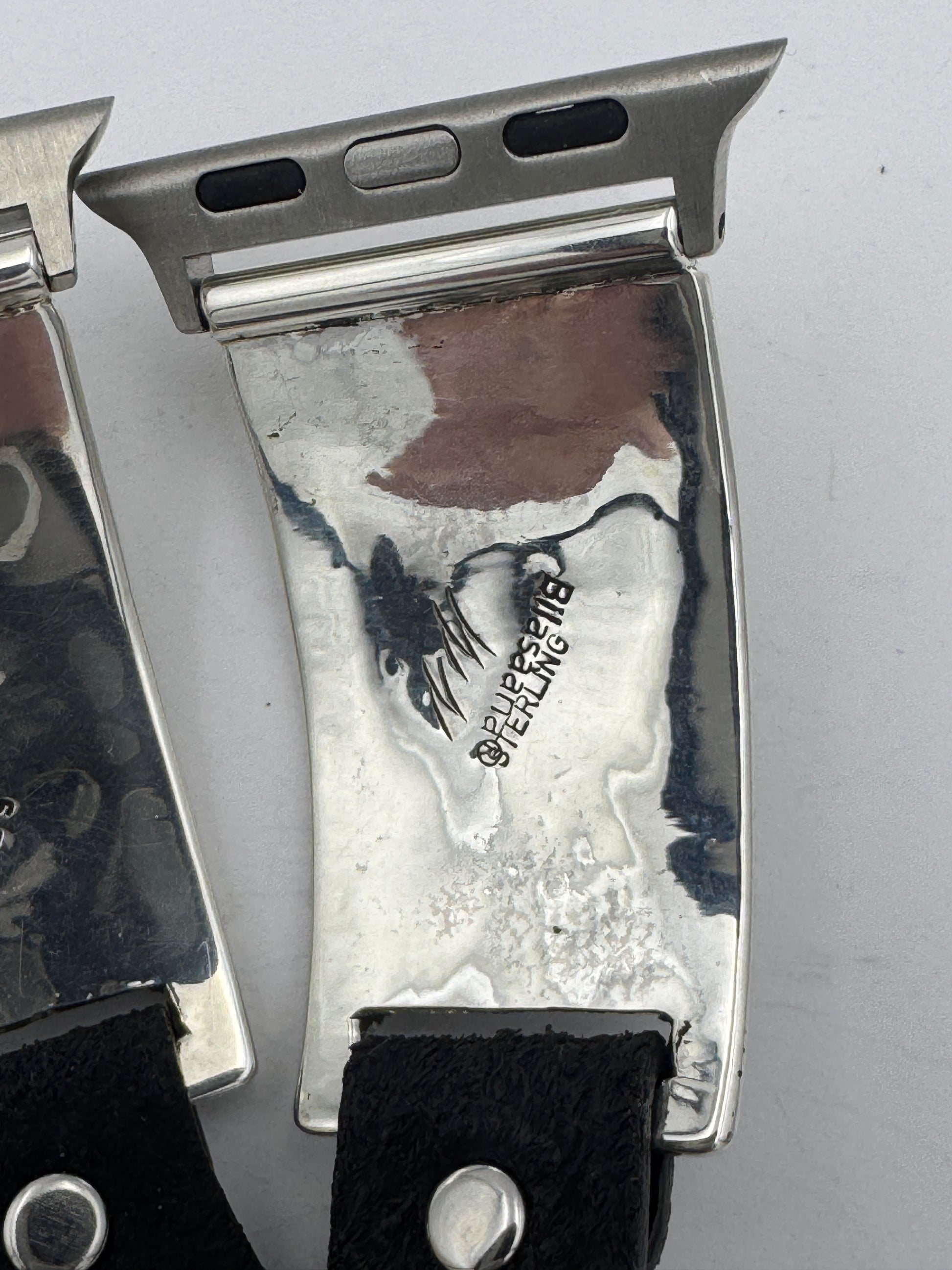 This purchase includes a Handcrafted Native American Sterling Silver Leather iBand for Apple WATCH Series 1 38mm thru Series 10 42mm. The Apple WATCH 38/40/41/42mm is not included.