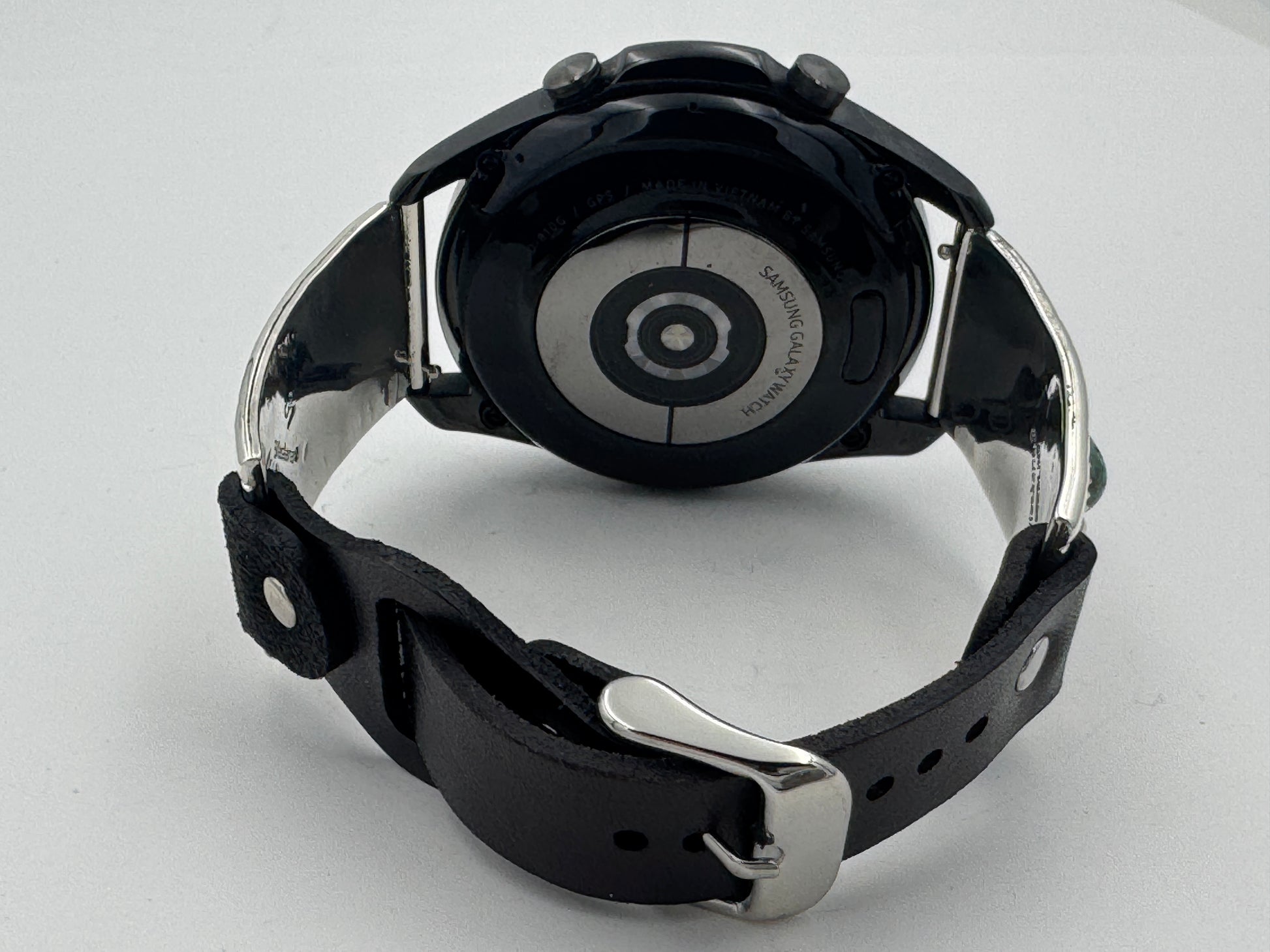 This purchase includes a Handcrafted Native American Sterling Silver Leather iBand for Samsung Galaxy Watch 3 45mm and other 22mm pin watches. The Samsung Galaxy 3 45mm watch is not included.