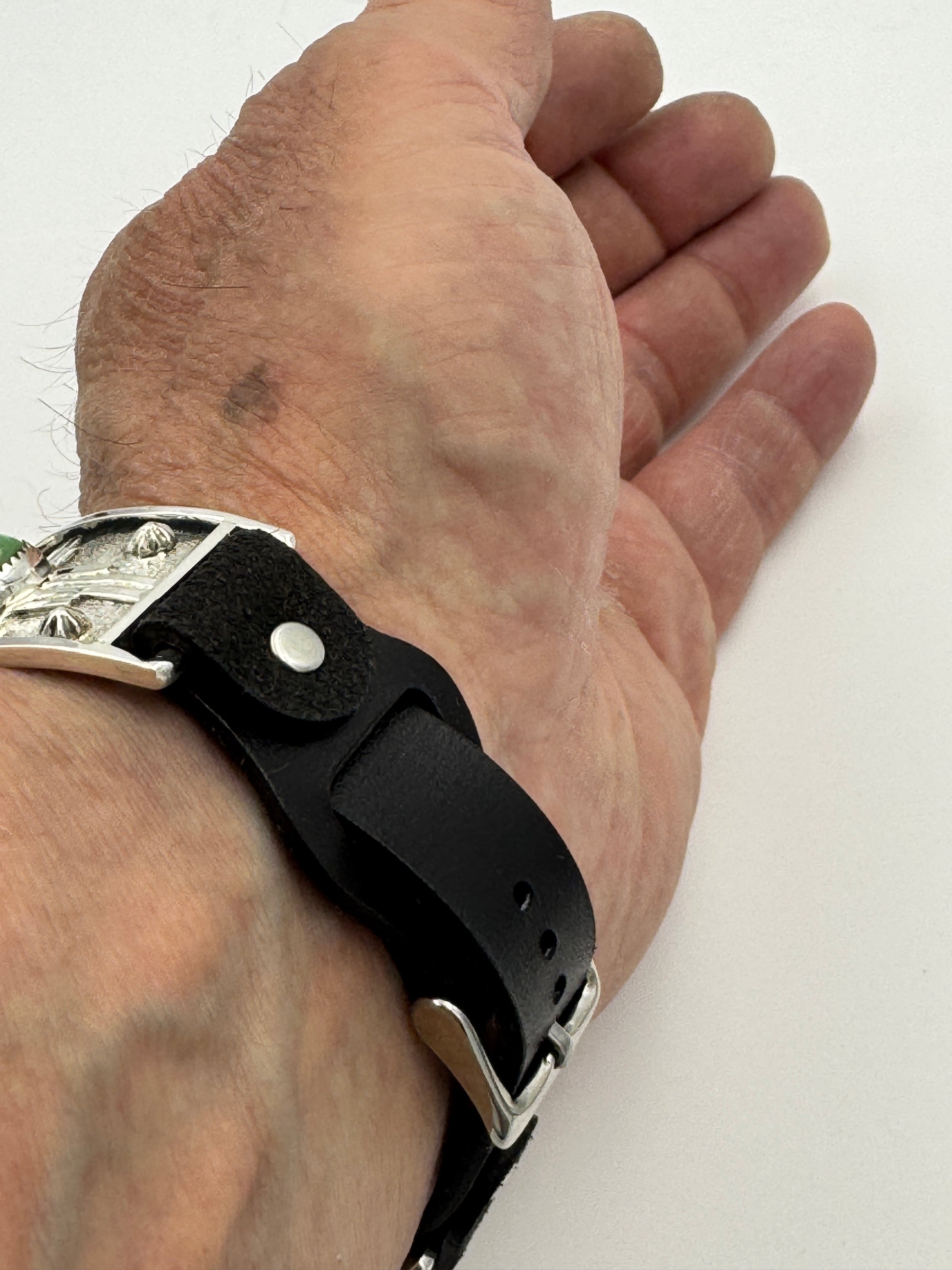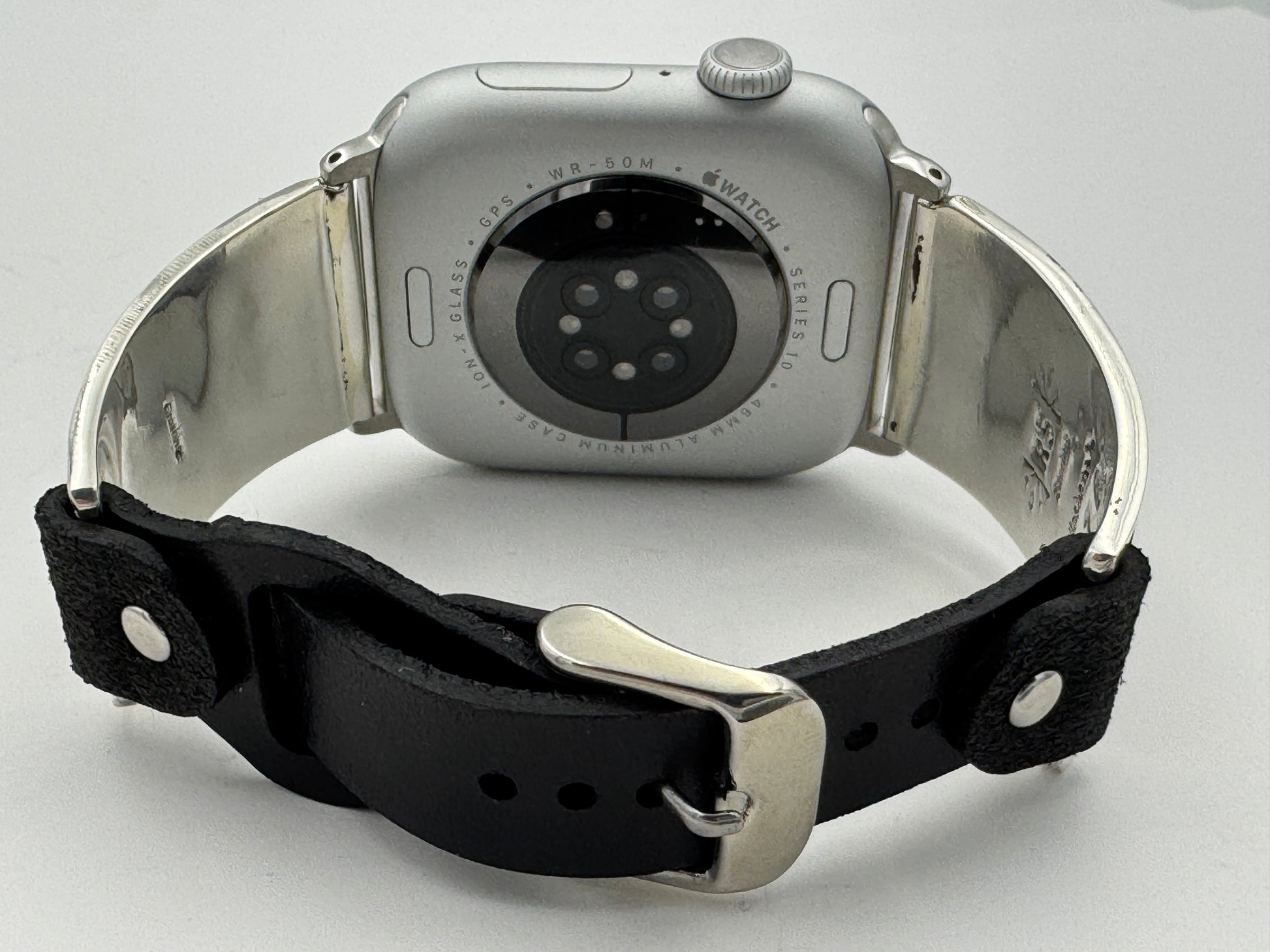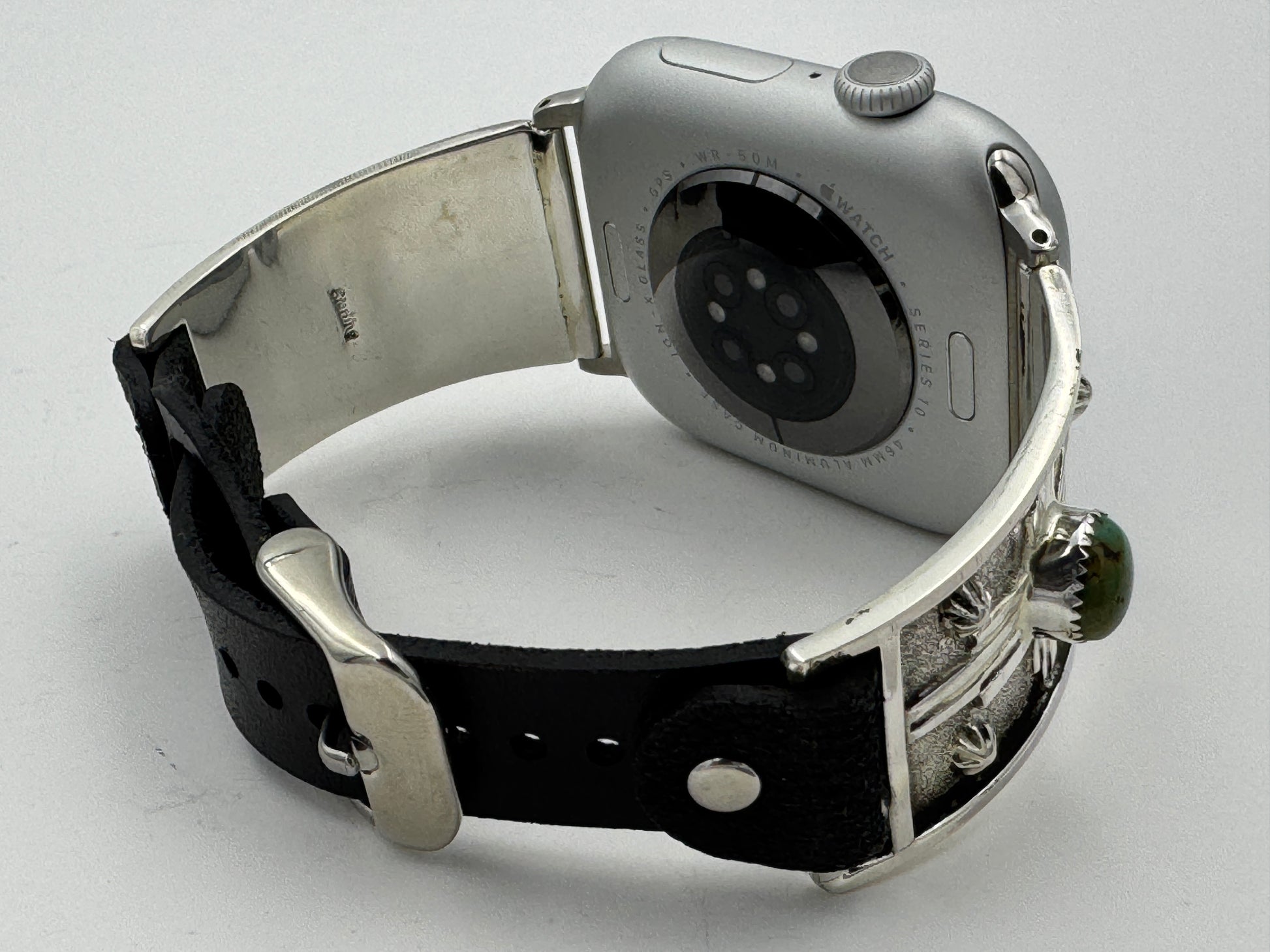 This purchase includes a Handcrafted Native American Sterling Silver Leather iBand for Apple WATCH Series 1 42mm thru Series 10 46mm. The Apple WATCH 42/44/45/46mm is not included. This band will also work with the Ultra I or II Apple Watch.