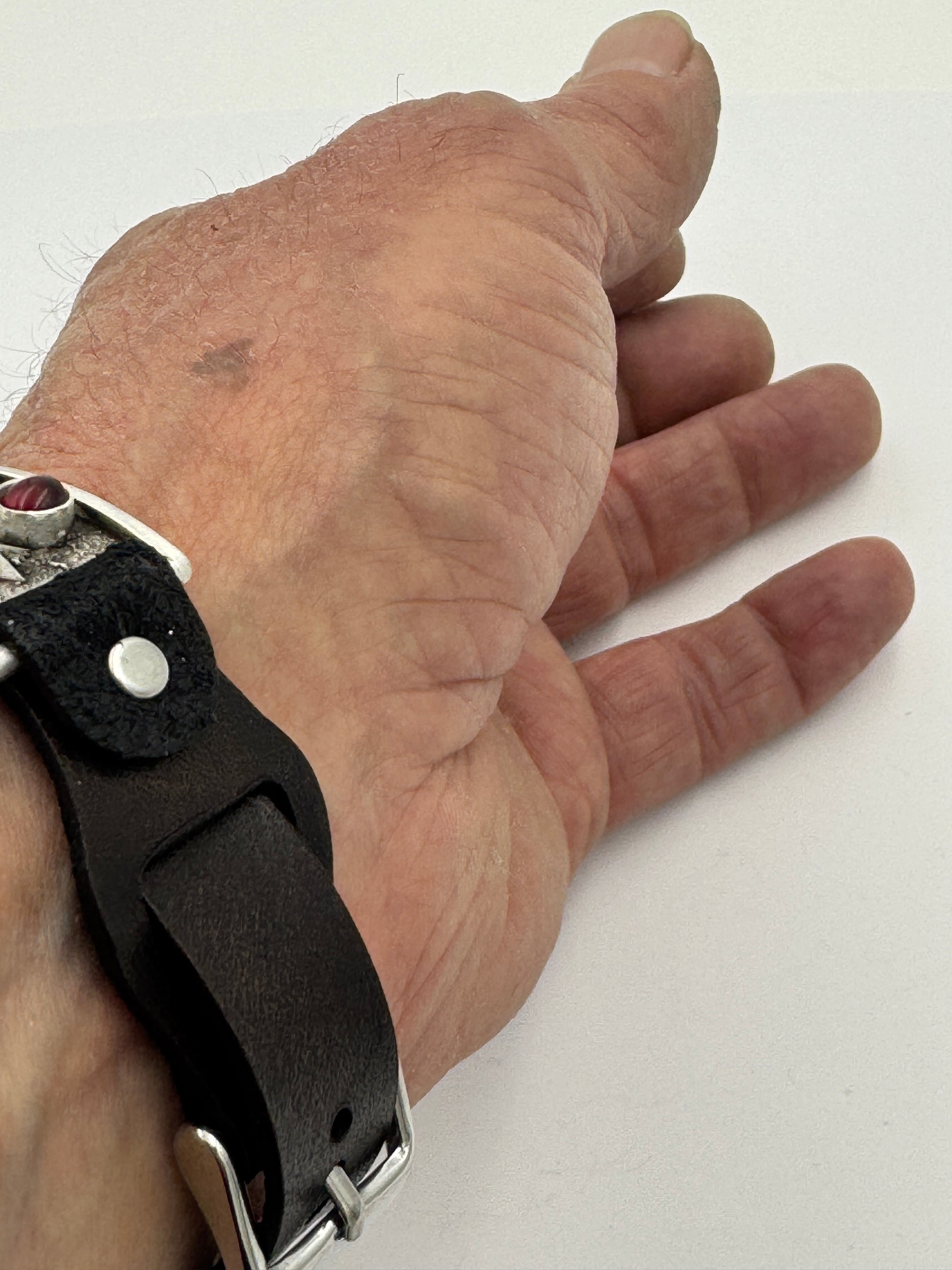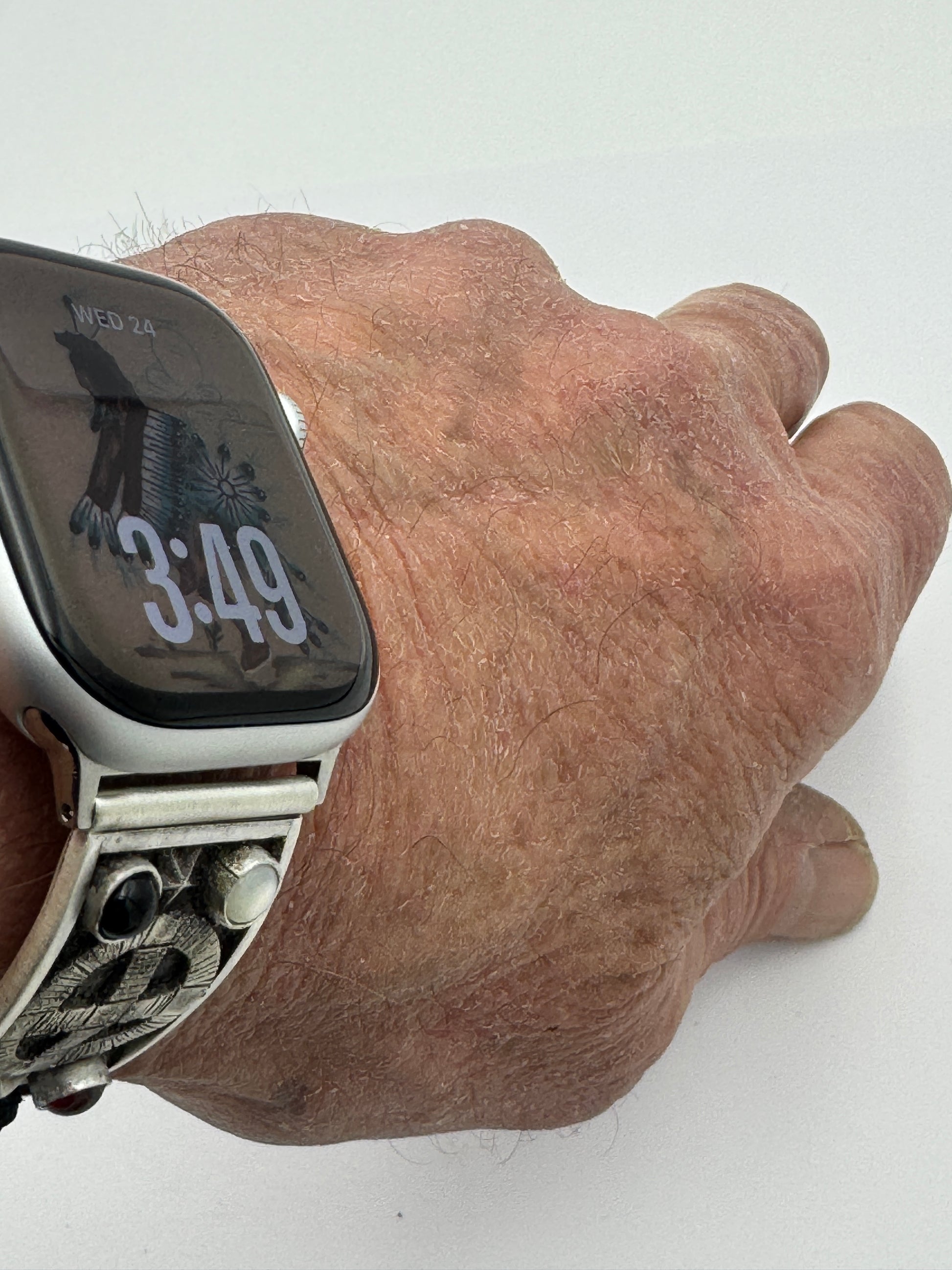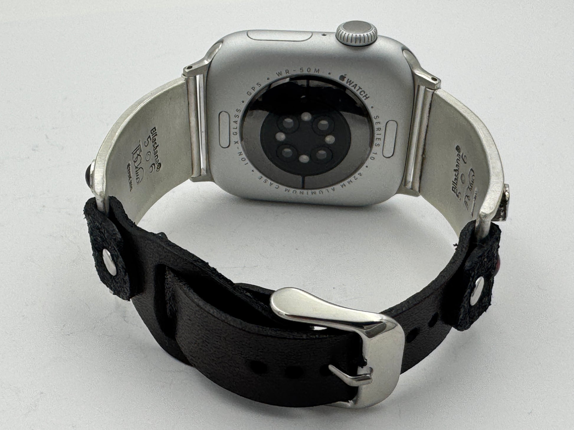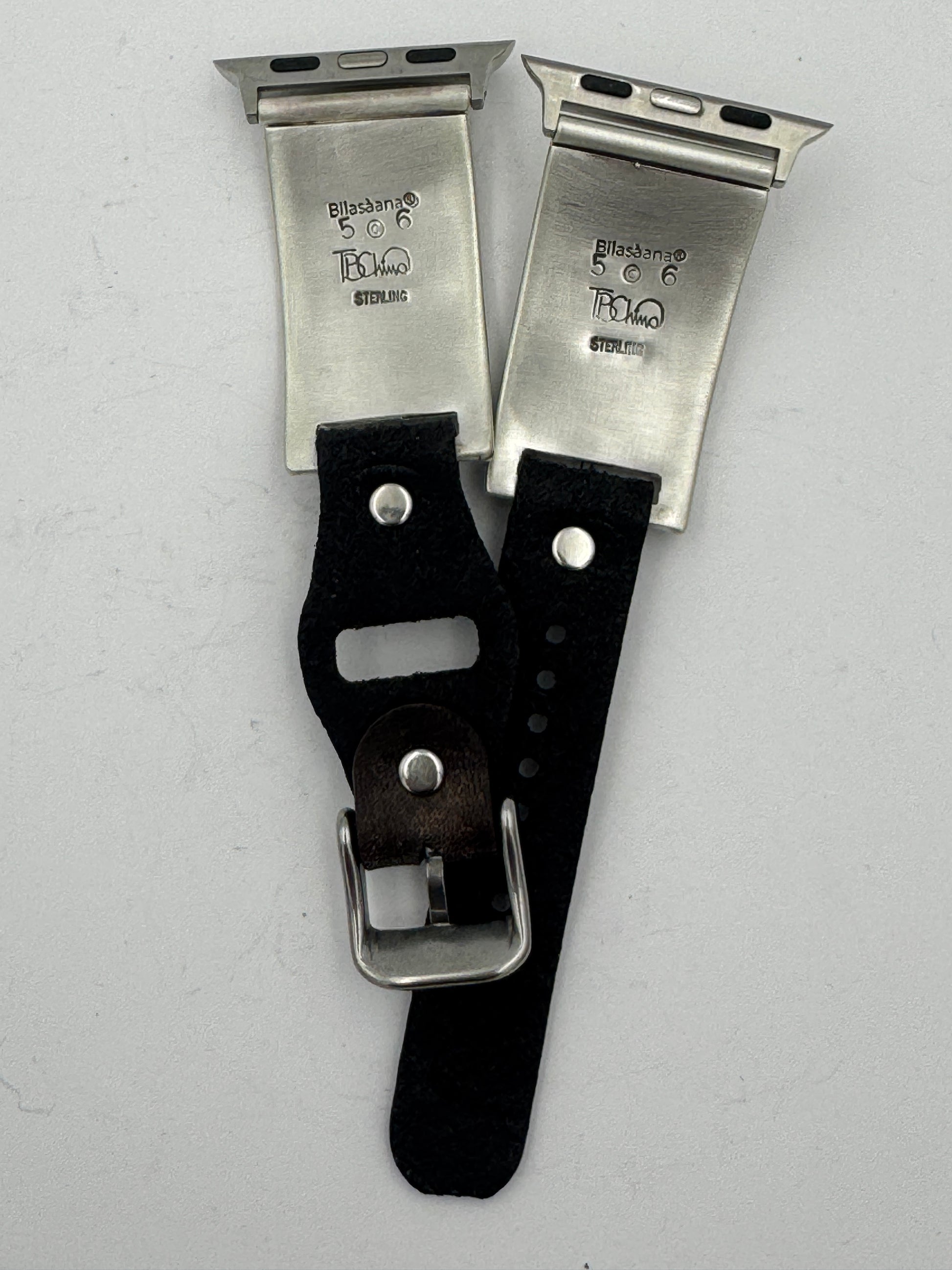 This purchase includes a Handcrafted Native American Sterling Silver watch tips with a Riveted Leather band for Apple WATCH Series 1 38mm thru Series 10 42mm. The Apple Watch 38/40/41/42mm is not included.