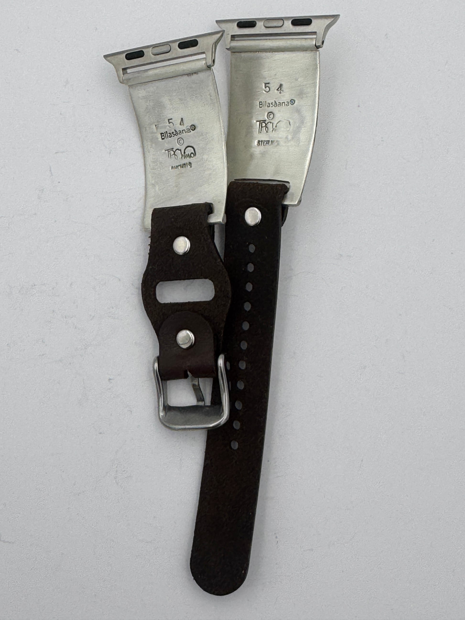 The iBand comes with our Laser Cut Water Resistant Riveted Buckle Leather Band v6.0 as shown. The leather band comes in two sizes S/M and M/L. The iBand shown has a medium brown M/L band attached. This is a great piece for a small to a medium size wrist. We can size this band to fit virtually any wrist. We can do the leather band in buckskin, black and other colors. Choose your band size at checkout and we will contact you to assure a nice fit. Be sure and leave us valid contact information and watch for our message to you. The iBand will seamlessly integrate with the Apple Watch 38mm Series 1 thru Series 9 41mm and the new Series 10 42mm.