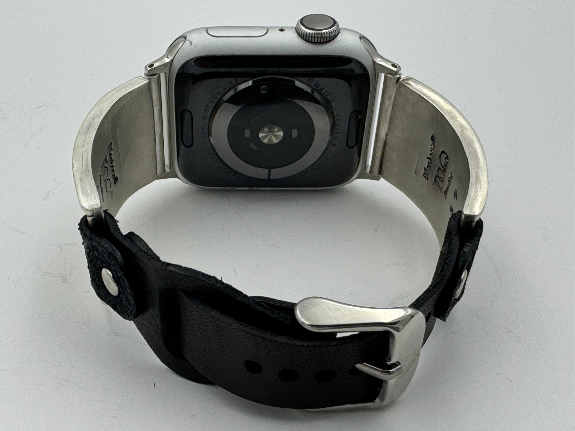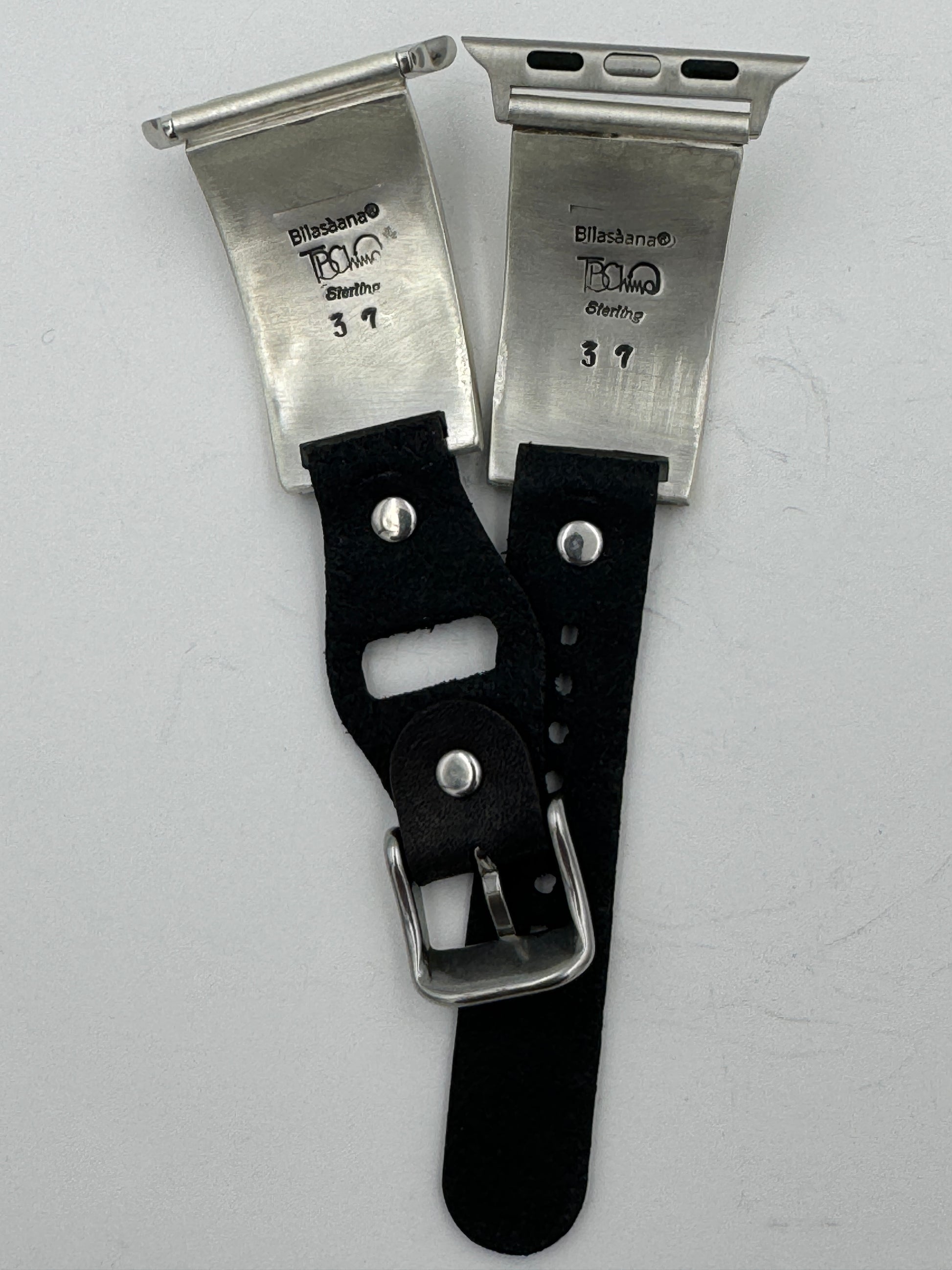 This purchase includes Handcrafted Native American Sterling Silver watch tips with a Riveted black colored Leather band for Apple WATCH Series 1 38mm thru 9 41mm. The Apple WATCH 38/40/41mm is not included.