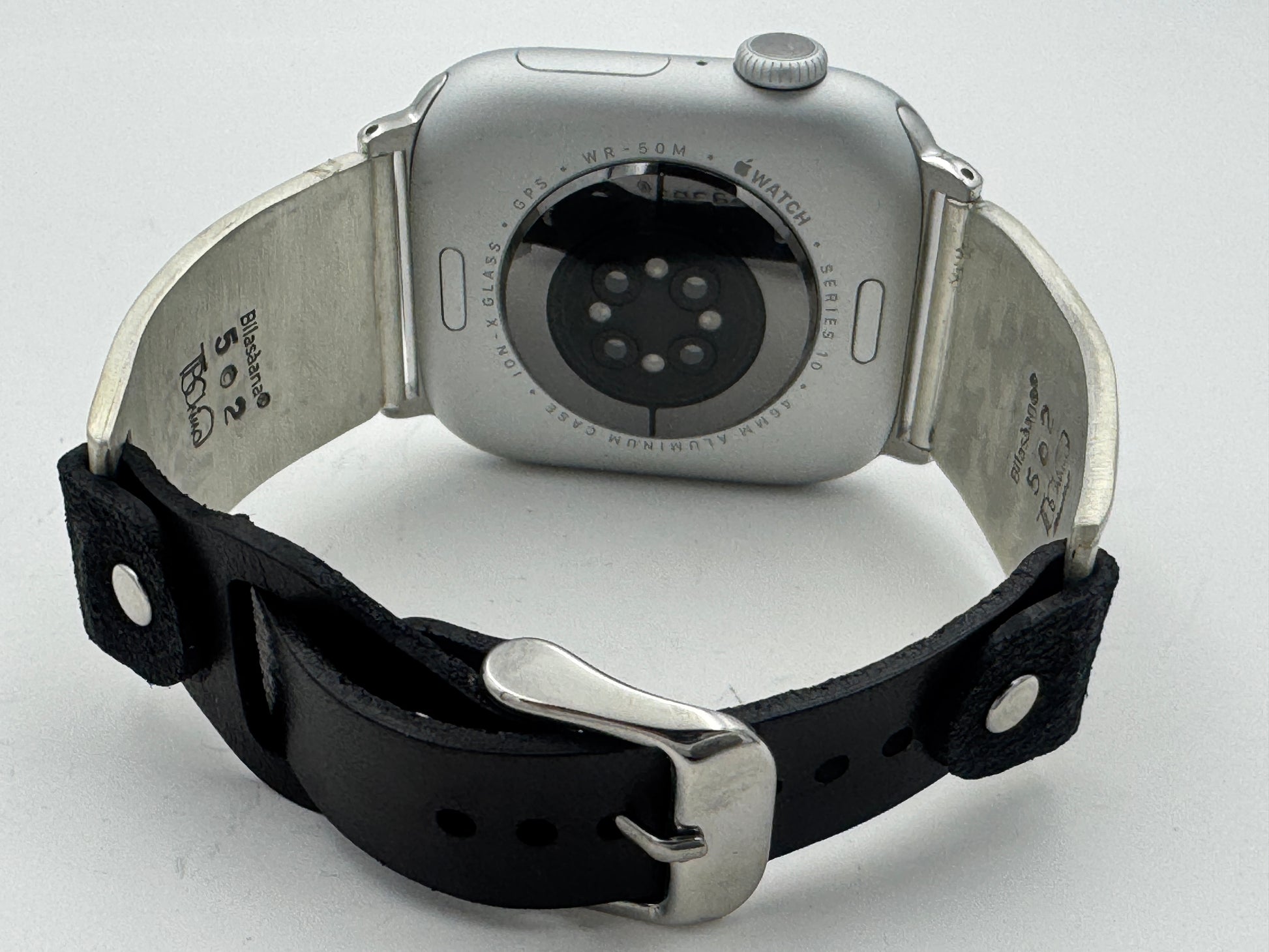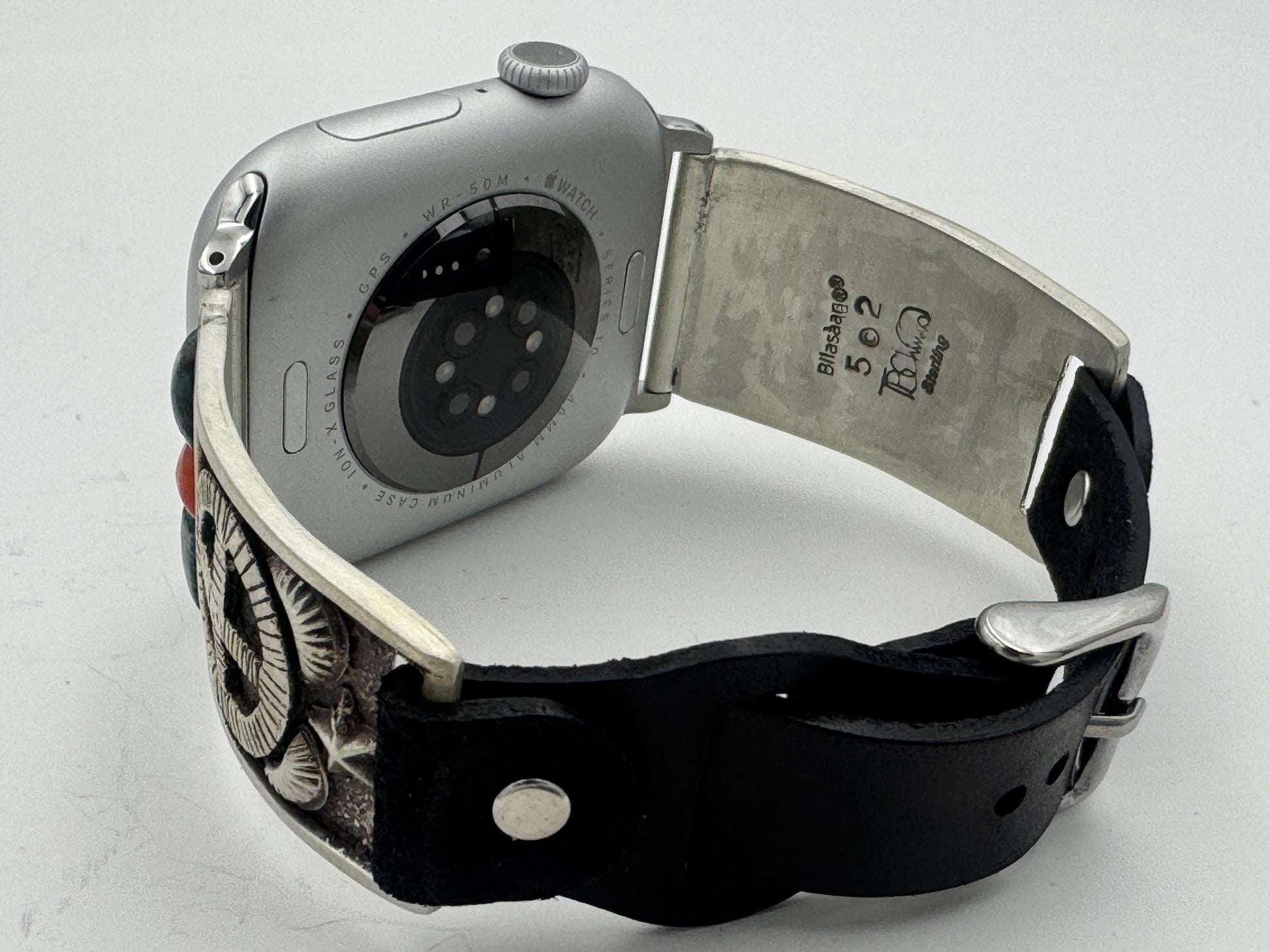 This purchase includes Handcrafted Native American Sterling Silver watch tips with a Riveted Leather buckle band for Apple Watch Series 1 42mm thru Series 10 46mm. The Apple Watch 42/44/45/46mm is not included. This band will also work with the new Series 10 46mm and the Ultra and Ultra 2 Watches.
