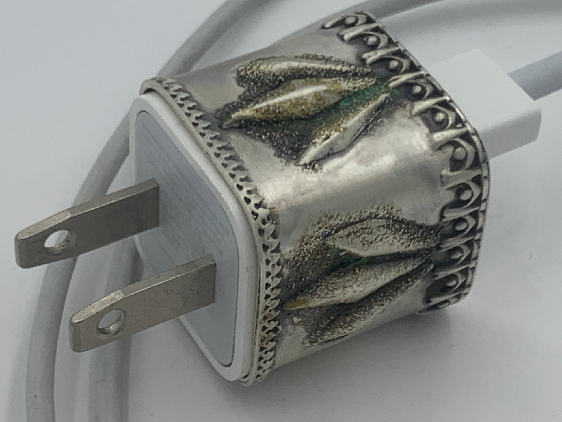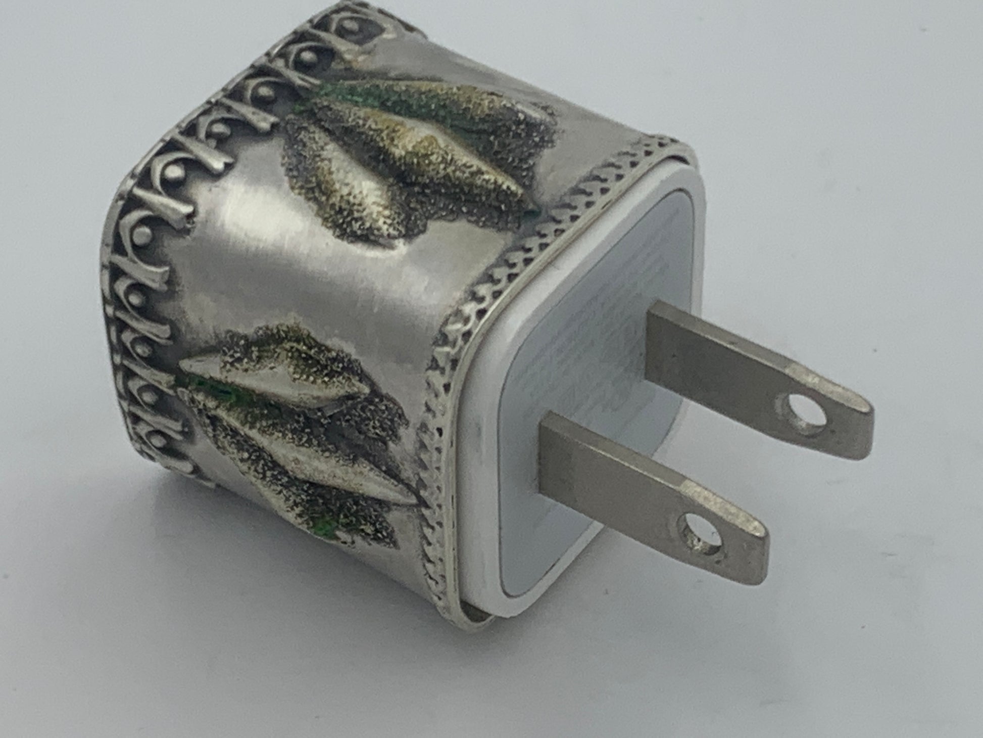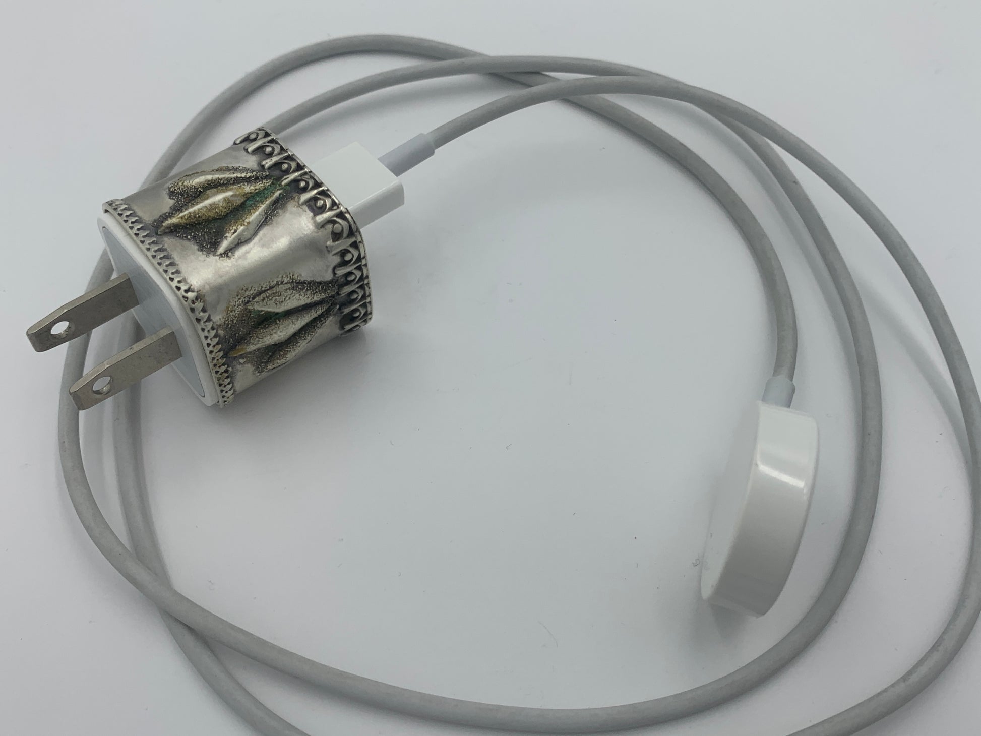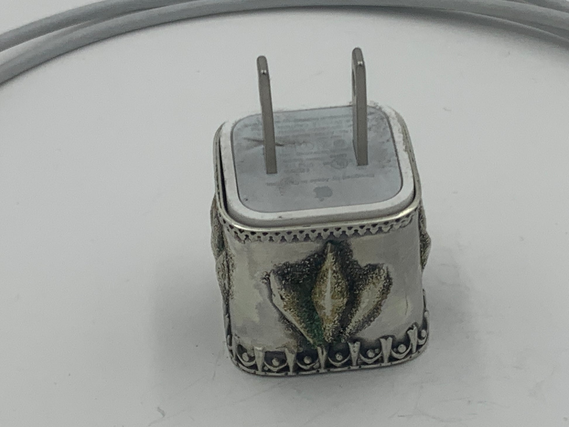 This purchase includes a Handcrafted Native American Sterling Silver iCase for an Apple USB Plug. The Apple USB Plug and Lightning Cable are not included.
